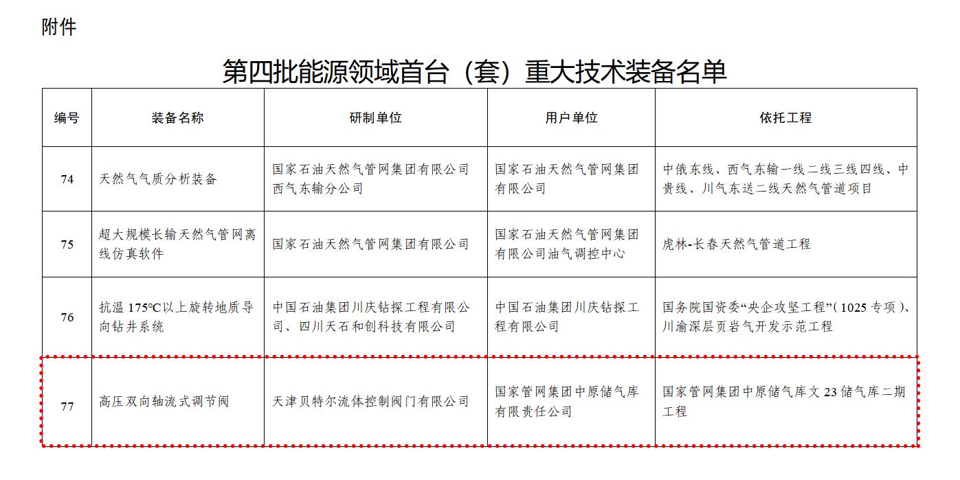 1月7日,國家能源局公告2025年第1號(hào)發(fā)布第四批能源領(lǐng)域首臺(tái)(套)重大技術(shù)裝備名單,博思特子公司貝特爾自主研發(fā)的高壓雙向軸流式調(diào)節(jié)閥成功入選。